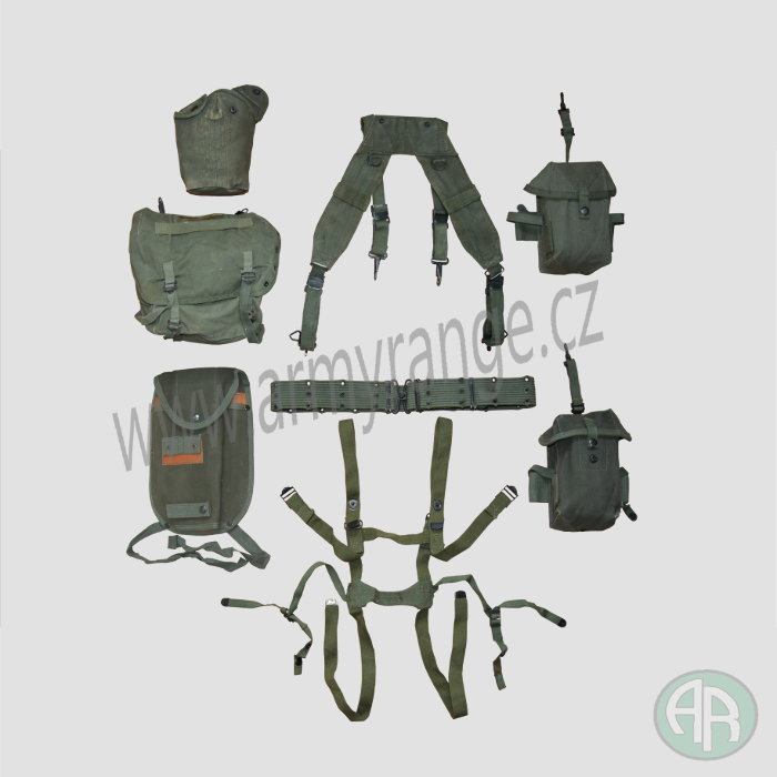 - sada obsahuje 8 ks (treky, opasek, 2 x sumka zásobníková, sumka na polní lahev, pouzdro na lopatku, řemení na spacák - "špagety", malá polní - butt pack